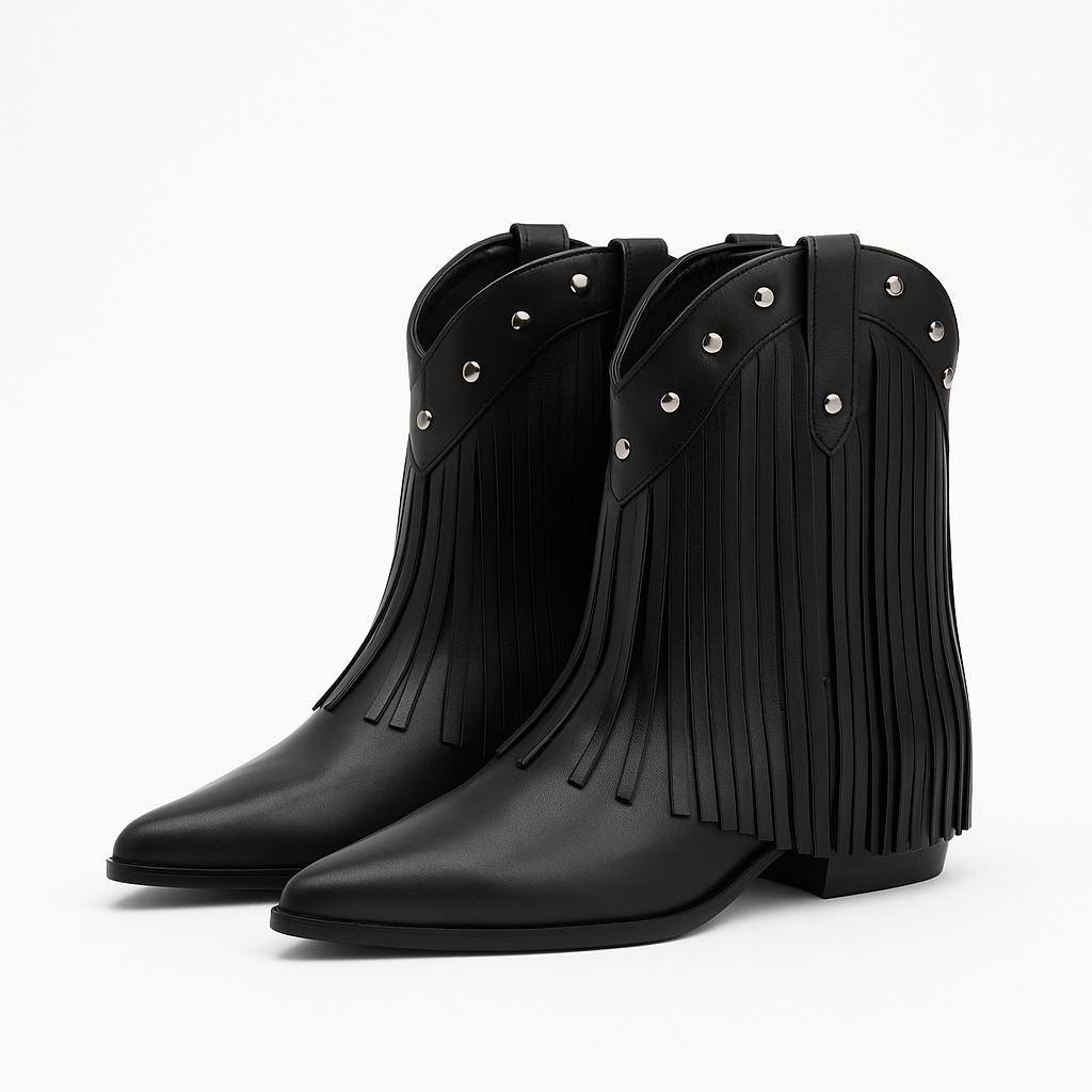 Bota preta com franjas