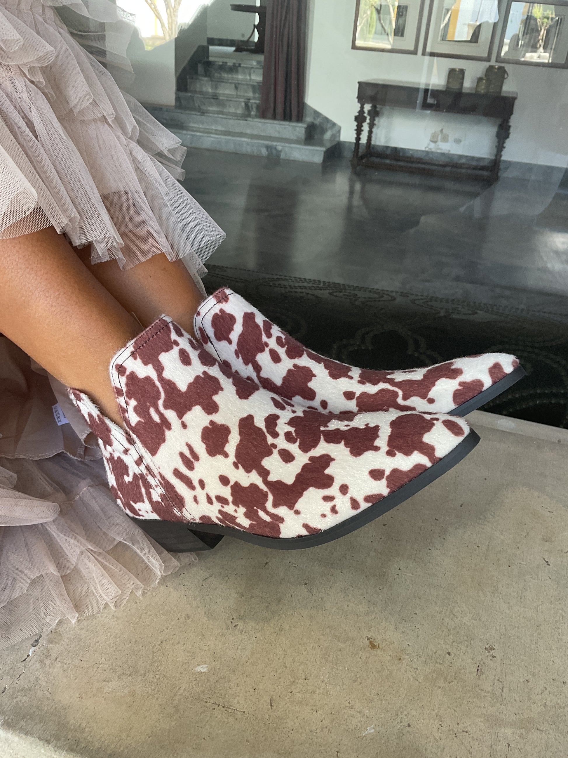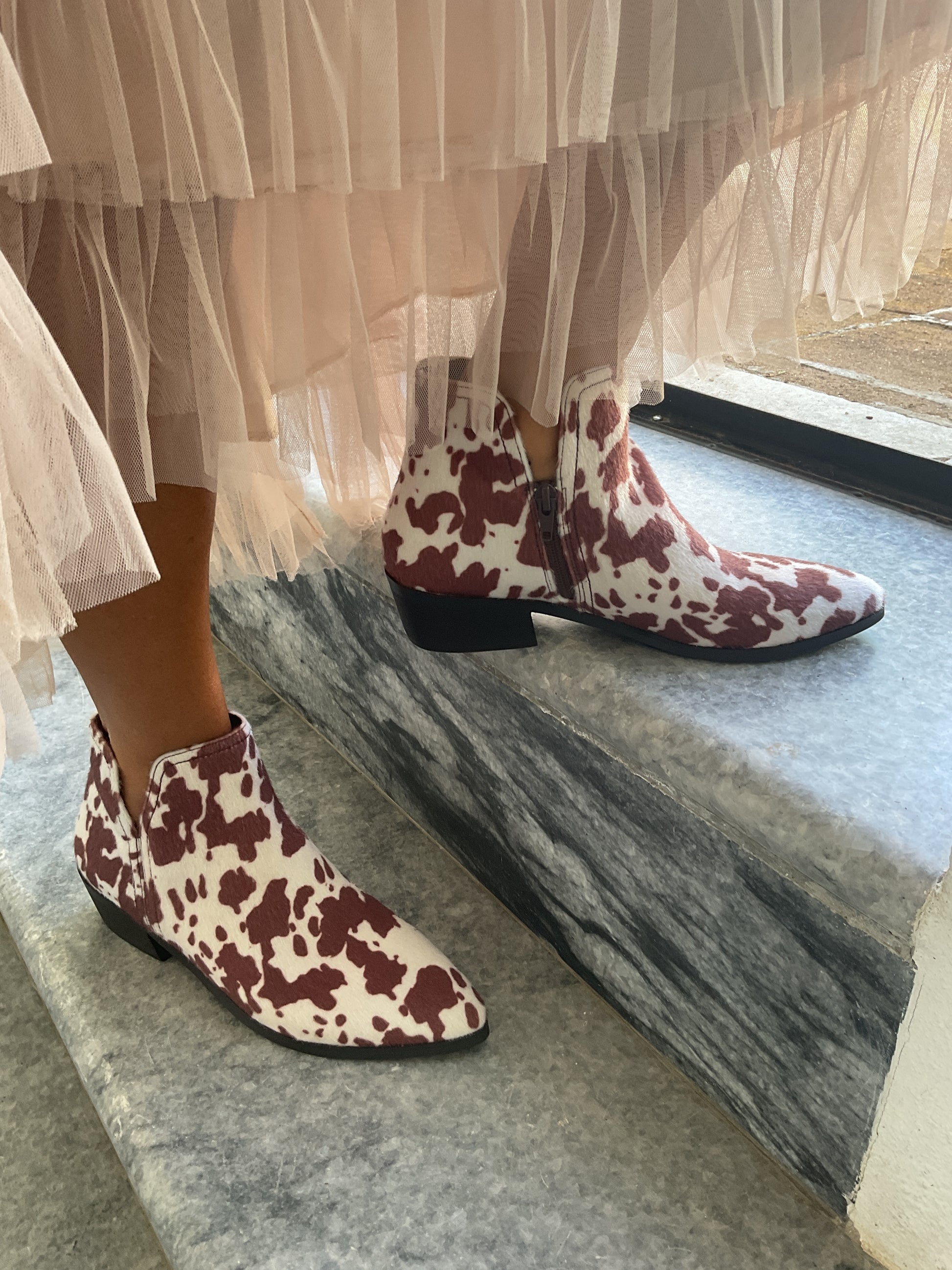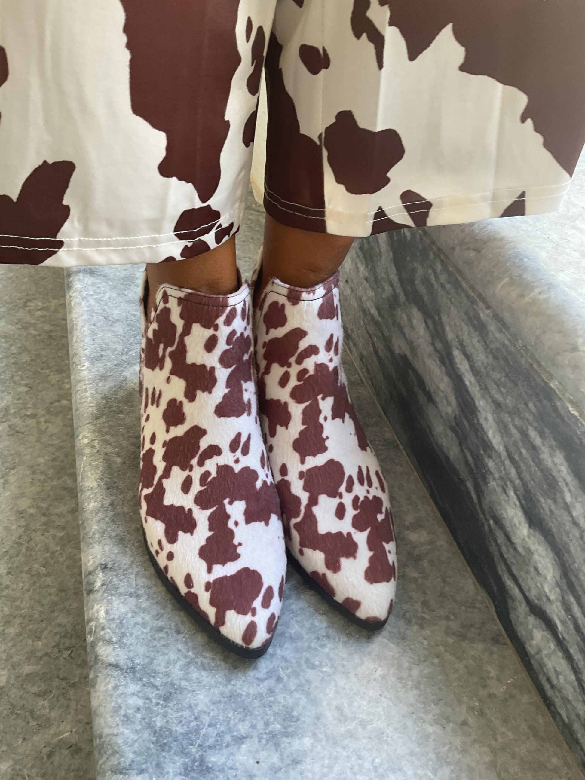 Botim com meio salto com padrão vaca