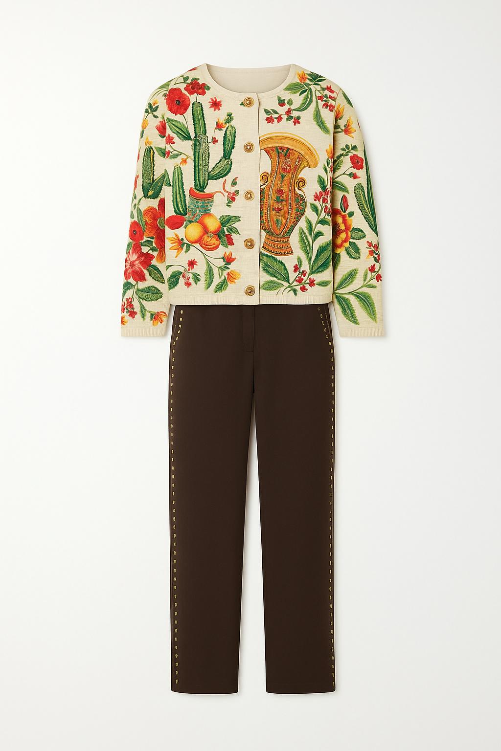 Calça de tecido de. Ganga com aplicação lateral e elástico na cintura.