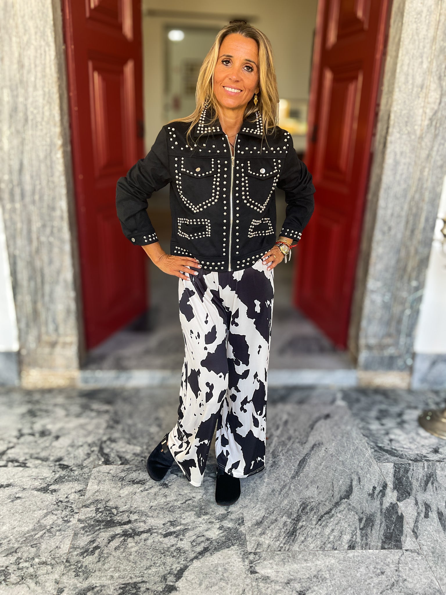 Casaco de preto com tachas