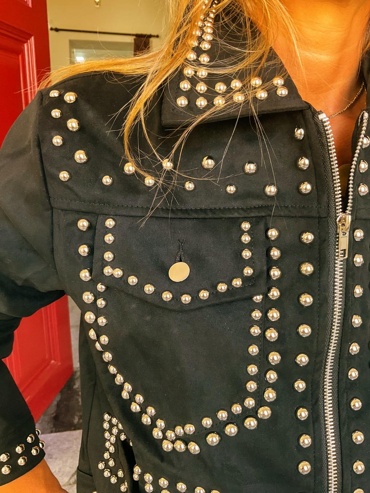 Casaco de pessego em cor preto com tachas.