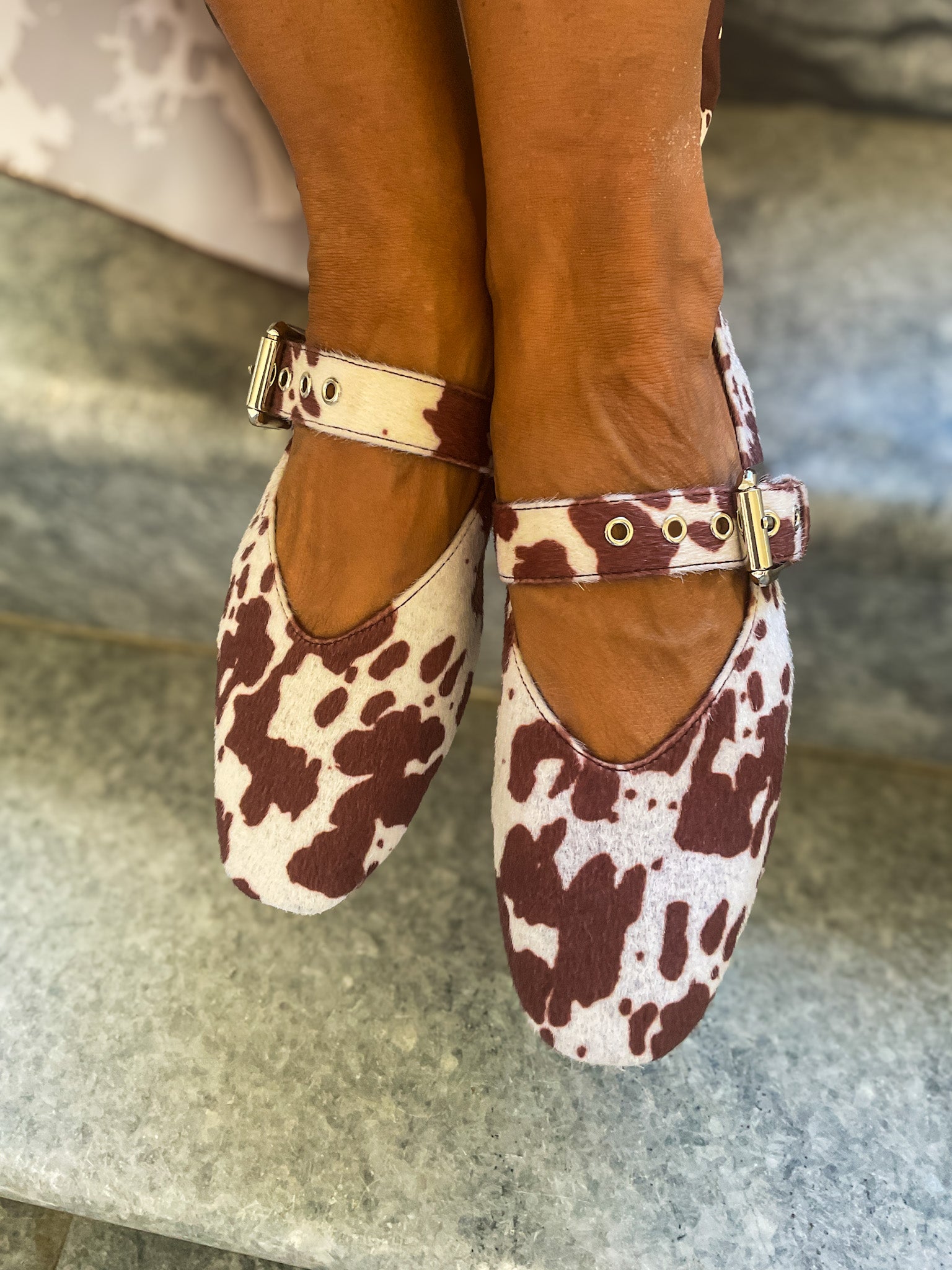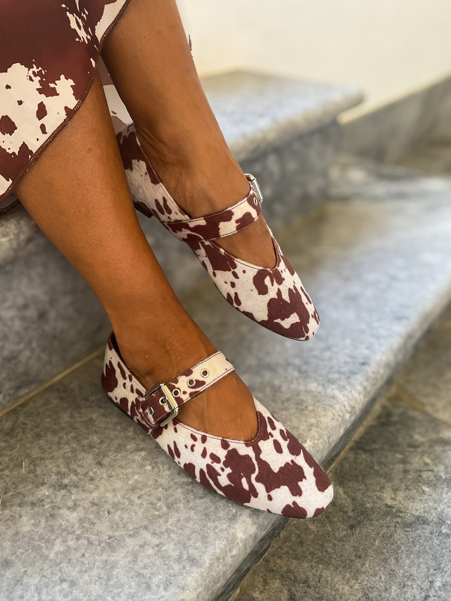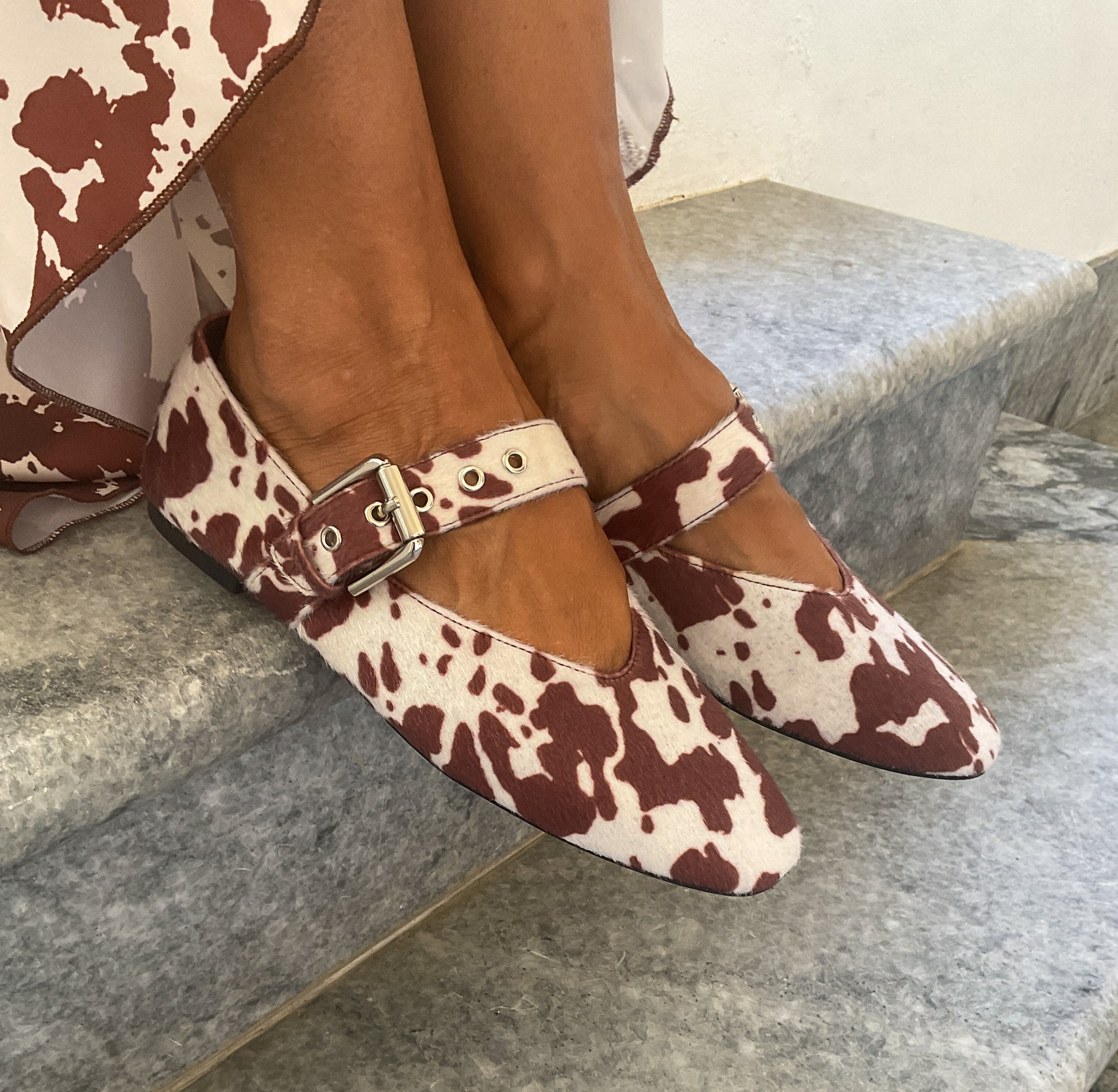 Sabrina de pelo em padrão vaca.