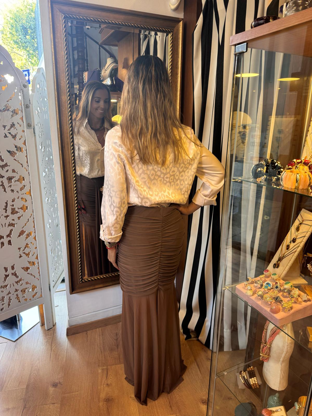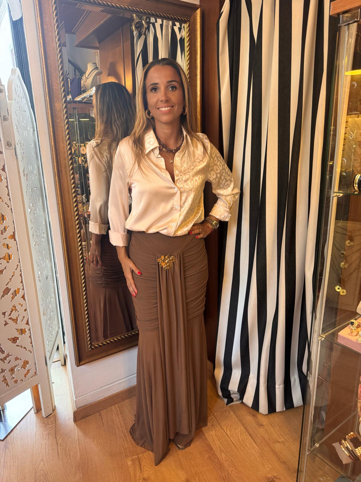 Saia em tecido leve com aplicação brilhante